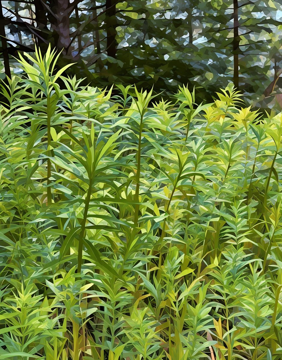 A multitude of fireweed plants reach eagerly for the sun after a rainy spring to help the summer blooms arrive. Gustavus, Alaska.